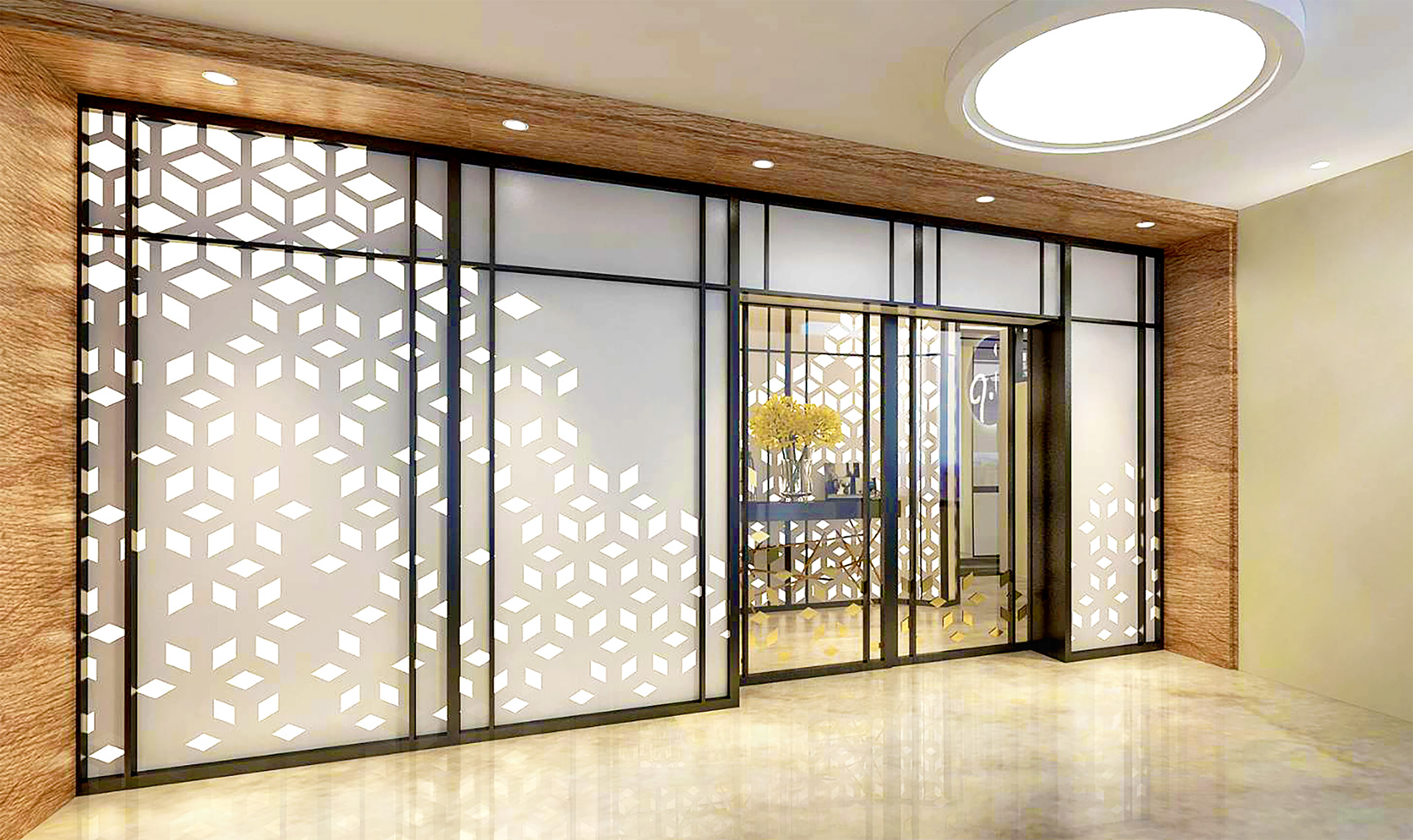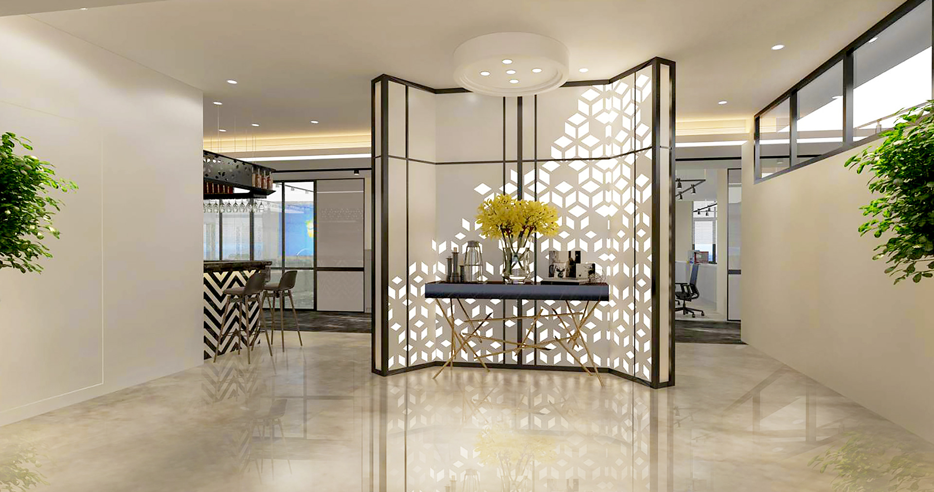 卻在燈光下絲毫看不出接縫點,完美延伸空間感。