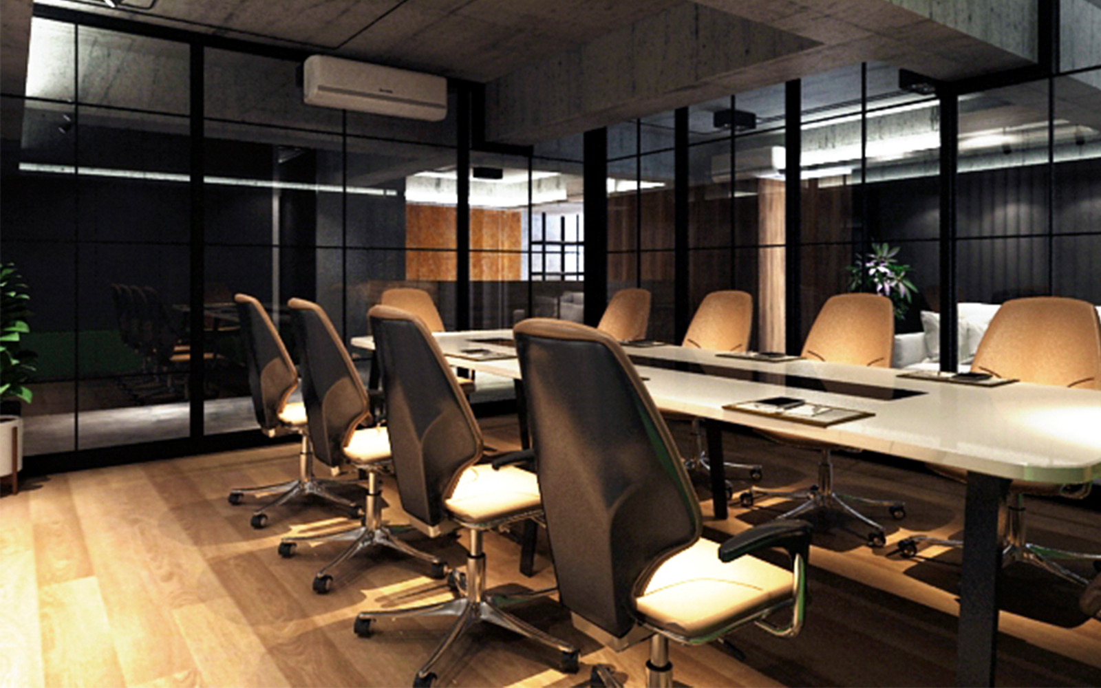 鐵件窗櫺,將大會議室裡討論的熱度完全隔絕,雙邊通透開放的玻璃,引導著旁人的目光,更為忙碌的夥伴們留下身影,無論望遠望近,他們都是世界的中心。