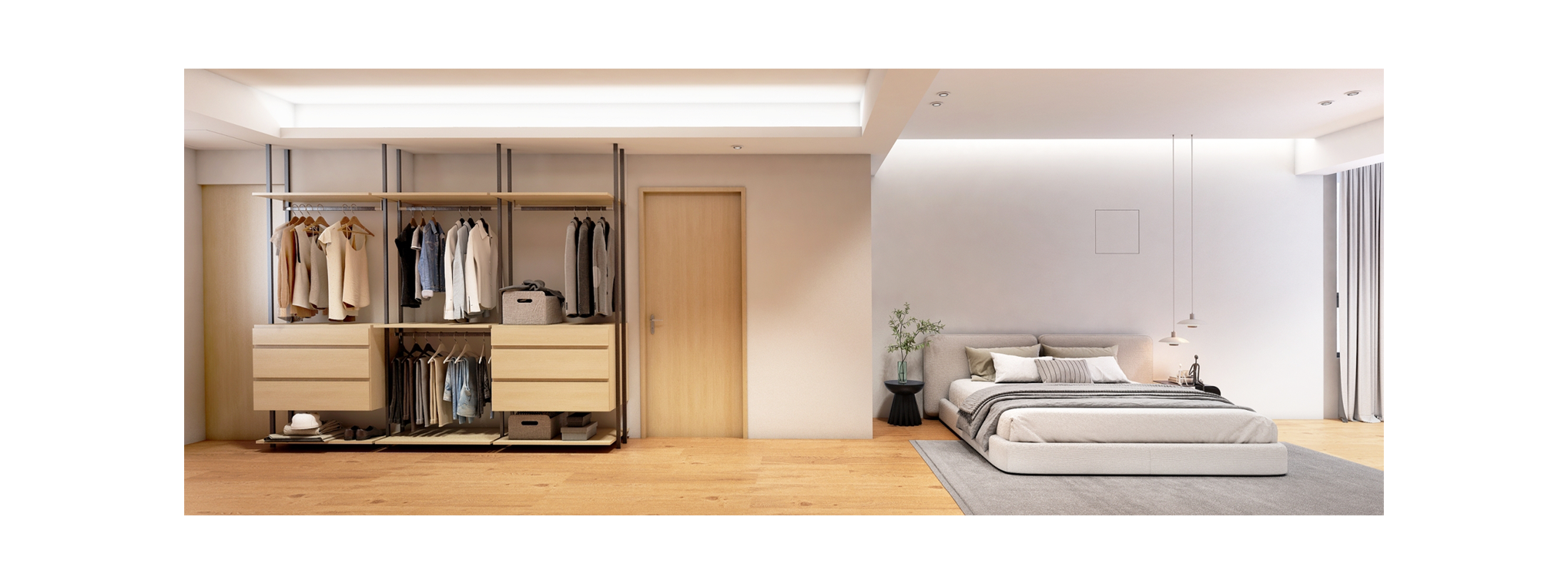 設計以柔和的灰色調為主,在家與城市界線間,